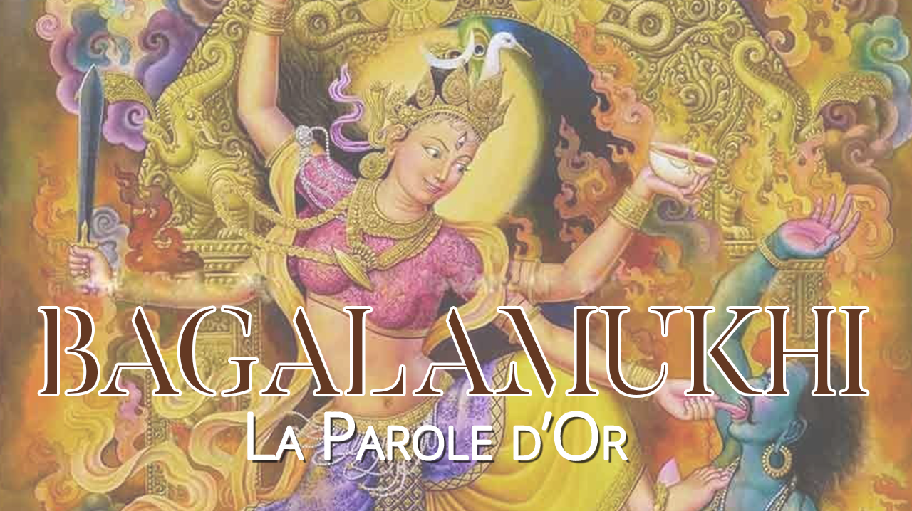 Bagalamukhi est la déesse qui paralyse d'effroi les démons. Tout d'or vêtue, elle est une source d'inspiration pour les femmes qui doivent trouver leur "nouvelle" vérité intérieure arrivée à la péri-ménopause.